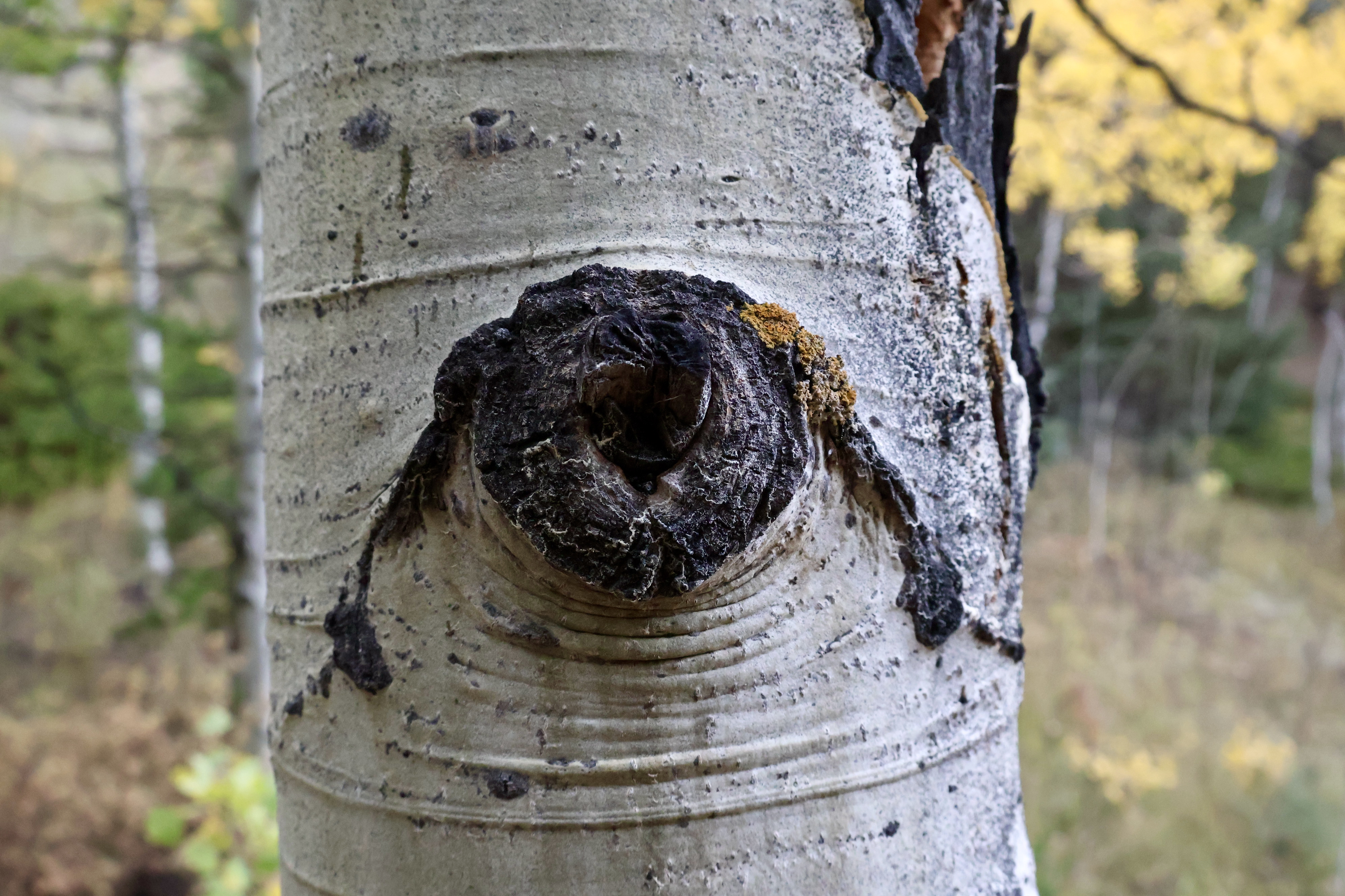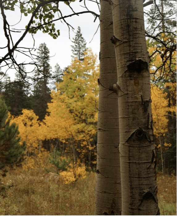 As fall approaches and the days get shorter, aspens are exposed to less sunlight, which in turn decreases photosynthesis. The main driver of photosynthesis, a group of chemical compounds called chlorophyll, turn sunlight into energy and reflect the green wavelengths of white light giving leaves their green pigment. But, as photosynthesis decreases, and less green light is reflected, the leaves’ natural fall colors can shine through.